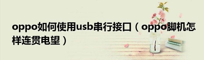 大家好,綜合小編來為大家講解下。oppo如何使用usb串行接口,oppo腳機怎樣連貫電望很多人還不知道,現在讓我們一起來看看吧!