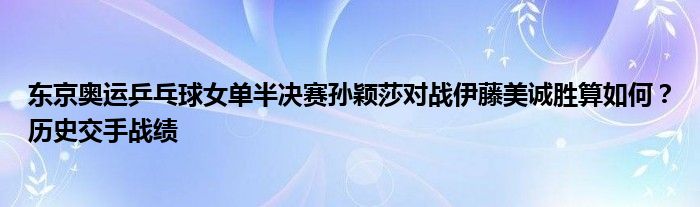 大家好,小安來為大家解答以上的問題東京奧運乒乓球女單半決賽孫穎莎對戰伊藤美誠勝算如何?歷史交手戰績這個很多人還不知道,現在讓我們一起來看看吧!