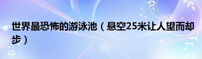 大家好,綜合小編來為大家講解下。世界最恐怖的游泳池,懸空25米讓人望而卻步很多人還不知道,現在讓我們一起來看看吧!
