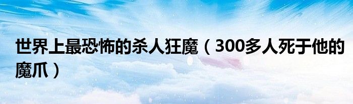 大家好,綜合小編來為大家講解下。世界上最恐怖的殺人狂魔,300多人死于他的魔爪很多人還不知道,現在讓我們一起來看看吧!
