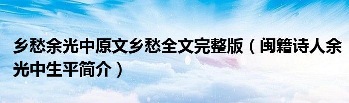 《鄉愁》是詩人余光中漂泊異鄉,游弋于海外回歸中國后所作的一首現代詩。詩歌表達對故鄉,對祖國戀戀不舍的一份情懷。詩歌中更體現了詩人余光中期待中華民族早日統一的美好愿望。》》余光中去世