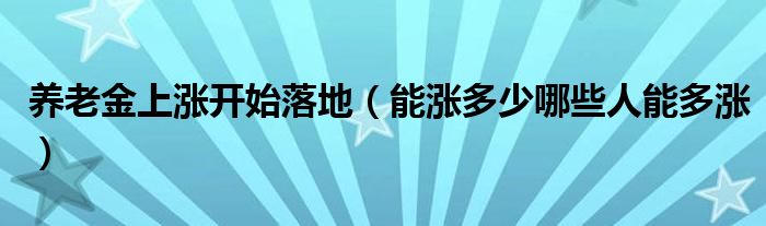 大家好,綜合小編來為大家講解下。養老金上漲開始落地,能漲多少哪些人能多漲很多人還不知道,現在讓我們一起來看看吧!