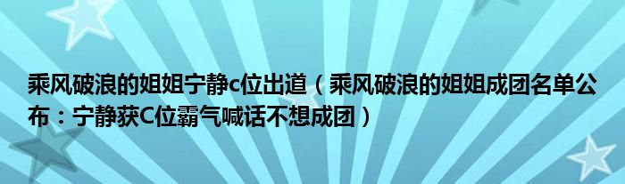 大家好,綜合小編來為大家講解下。乘風破浪的姐姐寧靜c位出道,乘風破浪的姐姐成團名單公布:寧靜獲C位霸氣喊話不想成團很多人還不知道,現(xiàn)在讓我們一起來看看吧!