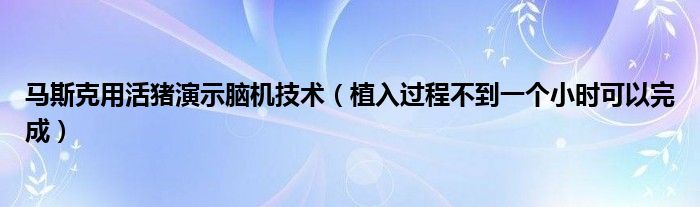 大家好,綜合小編來為大家講解下。馬斯克用活豬演示腦機技術,植入過程不到一個小時可以完成很多人還不知道,現在讓我們一起來看看吧!