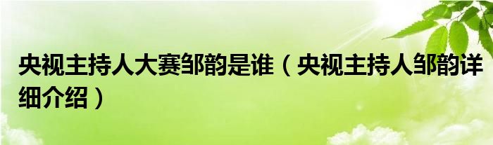 大家好,綜合小編來為大家講解下。央視主持人大賽鄒韻是誰,央視主持人鄒韻詳細介紹很多人還不知道,現在讓我們一起來看看吧!