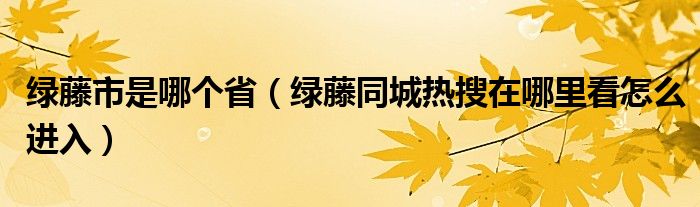 大家好,小安來為大家解答以上的問題綠藤市是哪個省,綠藤同城熱搜在哪里看怎么進入這個很多人還不知道,現在讓我們一起來看看吧!
