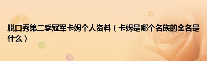 大家好,綜合小編來為大家講解下。脫口秀第二季冠軍卡姆個人資料,卡姆是哪個名族的全名是什么很多人還不知道,現在讓我們一起來看看吧!