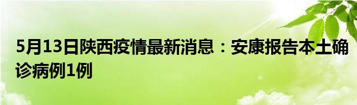 大家好,小安來為大家解答以上的問題5月13日陜西疫情最新消息:安康報告本土確診病例1例這個很多人還不知道,現在讓我們一起來看看吧!