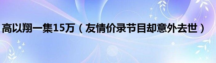 大家好,綜合小編來為大家講解下。高以翔一集15萬,友情價錄節目卻意外去世很多人還不知道,現在讓我們一起來看看吧!