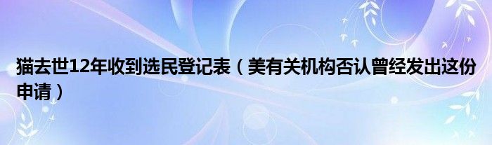 大家好,綜合小編來為大家講解下。貓去世12年收到選民登記表,美有關機構否認曾經發出這份申請很多人還不知道,現在讓我們一起來看看吧!