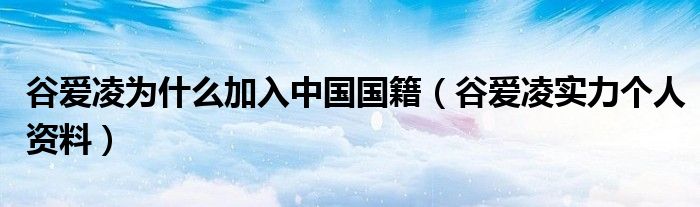 谷愛(ài)凌為什么加入中國(guó)國(guó)籍