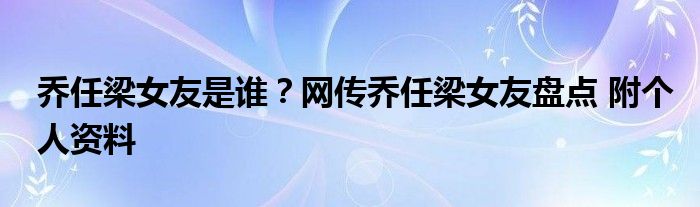 大家好,小安來為大家解答以上的問題喬任梁女友是誰?網傳喬任梁女友盤點,附個人資料這個很多人還不知道,現在讓我們一起來看看吧!