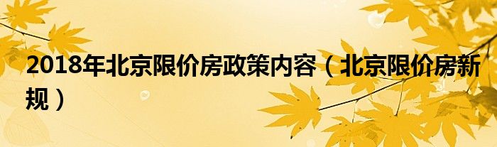 大家好,綜合小編來為大家講解下。2018年北京限價房政策內容,北京限價房新規很多人還不知道,現在讓我們一起來看看吧!