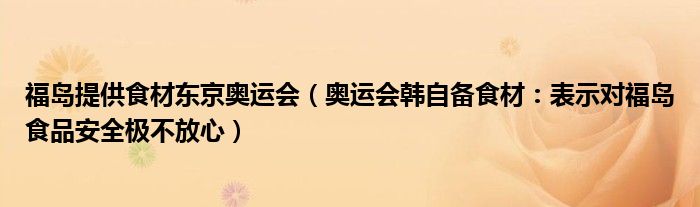 大家好,綜合小編來為大家講解下。福島提供食材東京奧運會,奧運會韓自備食材:表示對福島食品安全極不放心很多人還不知道,現在讓我們一起來看看吧!