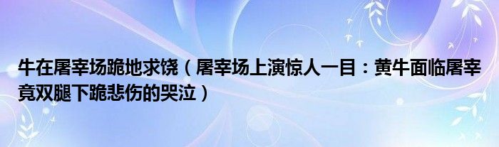 大家好,綜合小編來為大家講解下。牛在屠宰場跪地求饒,屠宰場上演驚人一目:黃牛面臨屠宰竟雙腿下跪悲傷的哭泣很多人還不知道,現(xiàn)在讓我們一起來看看吧!