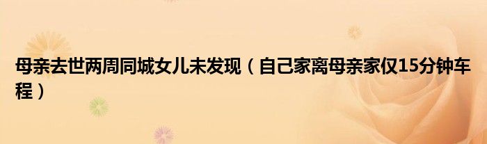 大家好,綜合小編來為大家講解下。母親去世兩周同城女兒未發現,自己家離母親家僅15分鐘車程很多人還不知道,現在讓我們一起來看看吧!