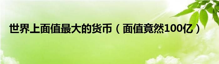 大家好,綜合小編來為大家講解下。世界上面值最大的貨幣,面值竟然100億很多人還不知道,現(xiàn)在讓我們一起來看看吧!