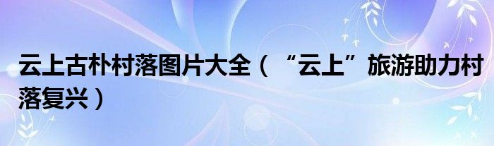 大家好,綜合小編來為大家講解下。云上古樸村落圖片大全,“云上”旅游助力村落復興很多人還不知道,現(xiàn)在讓我們一起來看看吧!