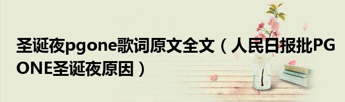 大家好,小安來為大家解答以上的問題圣誕夜pgone歌詞原文全文,人民日報批PGONE圣誕夜原因這個很多人還不知道,現在讓我們一起來看看吧!