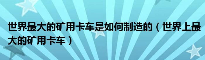 大家好,綜合小編來為大家講解下。世界最大的礦用卡車是如何制造的,世界上最大的礦用卡車很多人還不知道,現在讓我們一起來看看吧!