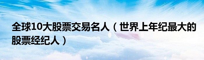 大家好,綜合小編來為大家講解下。全球10大股票交易名人,世界上年紀最大的股票經(jīng)紀人很多人還不知道,現(xiàn)在讓我們一起來看看吧!