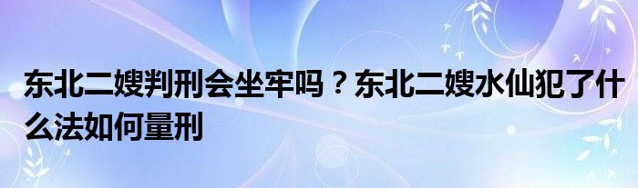 大家好,小安來為大家解答以上的問題東北二嫂判刑會坐牢嗎?東北二嫂水仙犯了什么法如何量刑這個很多人還不知道,現在讓我們一起來看看吧!