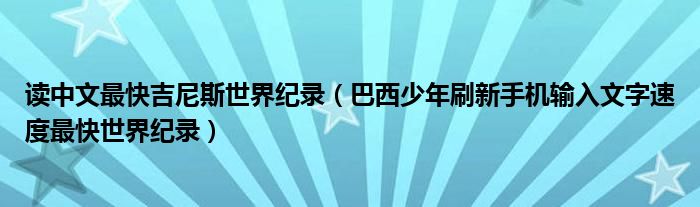 大家好,綜合小編來為大家講解下。讀中文最快吉尼斯世界紀錄,巴西少年刷新手機輸入文字速度最快世界紀錄很多人還不知道,現(xiàn)在讓我們一起來看看吧!