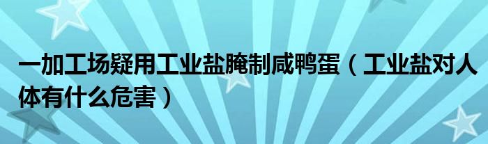 大家好,綜合小編來為大家講解下。一加工場疑用工業鹽腌制咸鴨蛋,工業鹽對人體有什么危害很多人還不知道,現在讓我們一起來看看吧!