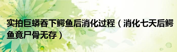 大家好,綜合小編來為大家講解下。實拍巨蟒吞下鱷魚后消化過程,消化七天后鱷魚竟尸骨無存很多人還不知道,現在讓我們一起來看看吧!