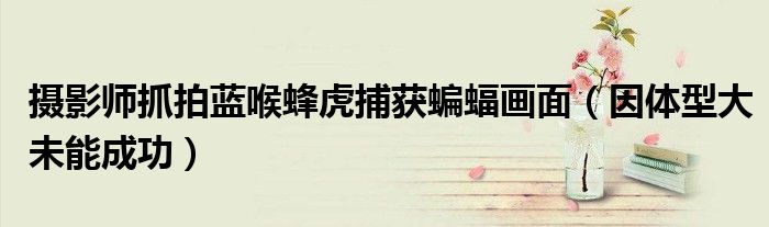 大家好,綜合小編來為大家講解下。攝影師抓拍藍喉蜂虎捕獲蝙蝠畫面,因體型大未能成功很多人還不知道,現在讓我們一起來看看吧!