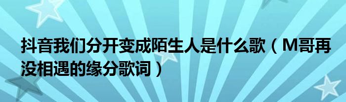大家好,小安來為大家解答以上的問題抖音我們分開變成陌生人是什么歌,M哥再沒相遇的緣分歌詞這個很多人還不知道,現在讓我們一起來看看吧!
