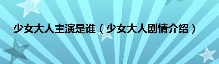 大家好,綜合小編來為大家講解下。少女大人主演是誰,少女大人劇情介紹很多人還不知道,現在讓我們一起來看看吧!