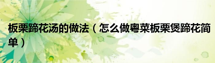 大家好,綜合小編來為大家講解下。板栗蹄花湯的做法,怎么做粵菜板栗煲蹄花簡(jiǎn)單很多人還不知道,現(xiàn)在讓我們一起來看看吧!