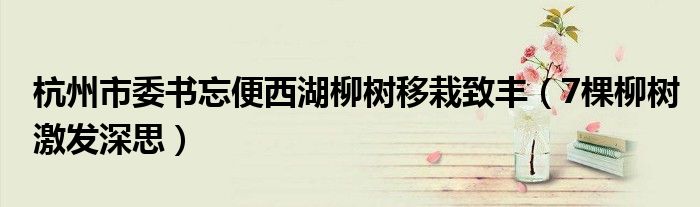 大家好,綜合小編來為大家講解下。杭州市委書忘便西湖柳樹移栽致豐,7棵柳樹激發深思很多人還不知道,現在讓我們一起來看看吧!
