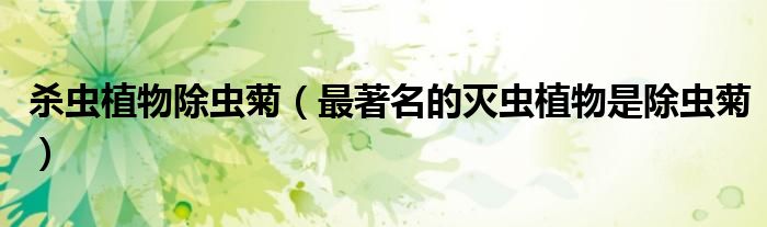 大家好,綜合小編來為大家講解下。殺蟲植物除蟲菊,最著名的滅蟲植物是除蟲菊很多人還不知道,現在讓我們一起來看看吧!