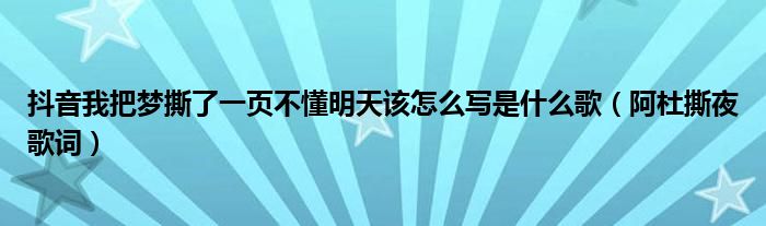 抖音上有很多類型的歌曲,有的歌很動(dòng)感,有的歌很溫柔。抖音我把夢(mèng)撕了一頁不懂明天該怎么寫是什么歌?阿杜的撕夜歌詞介紹?