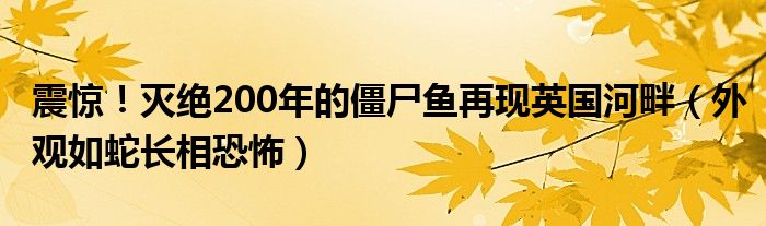 大家好,綜合小編來為大家講解下。震驚!滅絕200年的僵尸魚再現英國河畔,外觀如蛇長相恐怖很多人還不知道,現在讓我們一起來看看吧!