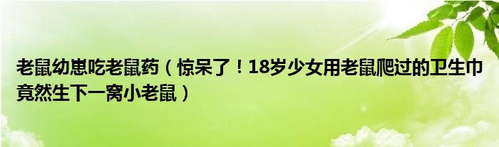 大家好,綜合小編來為大家講解下。老鼠幼崽吃老鼠藥,驚呆了!18歲少女用老鼠爬過的衛生巾竟然生下一窩小老鼠很多人還不知道,現在讓我們一起來看看吧!