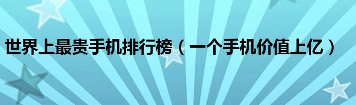 大家好,綜合小編來為大家講解下。世界上最貴手機排行榜,一個手機價值上億很多人還不知道,現在讓我們一起來看看吧!