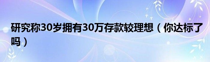 大家好,綜合小編來為大家講解下。研究稱30歲擁有30萬存款較理想,你達標了嗎很多人還不知道,現在讓我們一起來看看吧!