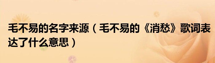 大家好,小安來為大家解答以上的問題毛不易的名字來源,毛不易的《消愁》歌詞表達(dá)了什么意思這個(gè)很多人還不知道,現(xiàn)在讓我們一起來看看吧!
