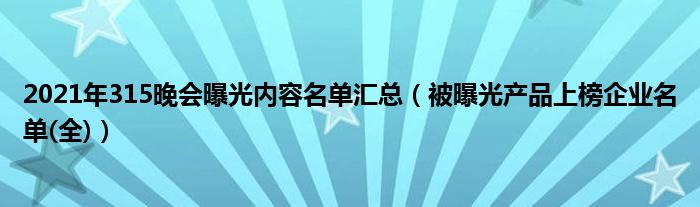 大家好,小安來為大家解答以上的問題2021年315晚會曝光內容名單匯總,被曝光產品上榜企業名單(全)這個很多人還不知道,現在讓我們一起來看看吧!