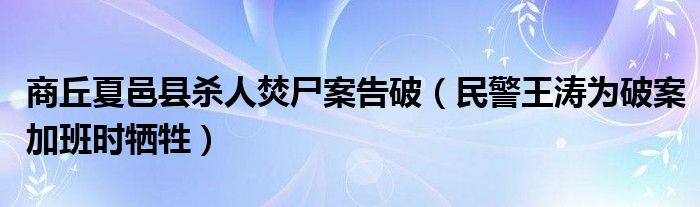 大家好,小安來為大家解答以上的問題商丘夏邑縣殺人焚尸案告破,民警王濤為破案加班時犧牲這個很多人還不知道,現(xiàn)在讓我們一起來看看吧!