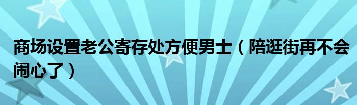 大家好,小安來為大家解答以上的問題商場設置老公寄存處方便男士,陪逛街再不會鬧心了這個很多人還不知道,現在讓我們一起來看看吧!