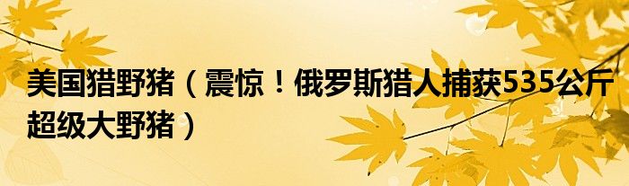 大家好,綜合小編來為大家講解下。美國獵野豬,震驚!俄羅斯獵人捕獲535公斤超級(jí)大野豬很多人還不知道,現(xiàn)在讓我們一起來看看吧!