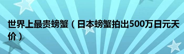 大家好,綜合小編來為大家講解下。世界上最貴螃蟹,日本螃蟹拍出500萬日元天價很多人還不知道,現在讓我們一起來看看吧!