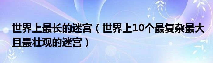 大家好,綜合小編來為大家講解下。世界上最長的迷宮,世界上10個最復雜最大且最壯觀的迷宮很多人還不知道,現在讓我們一起來看看吧!