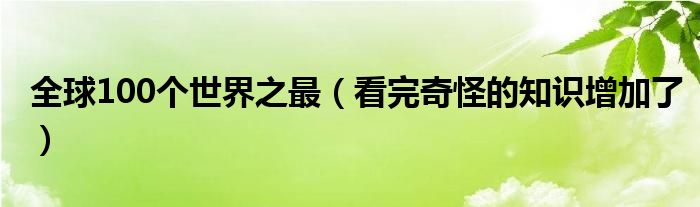 大家好,綜合小編來為大家講解下。全球100個世界之最,看完奇怪的知識增加了很多人還不知道,現在讓我們一起來看看吧!
