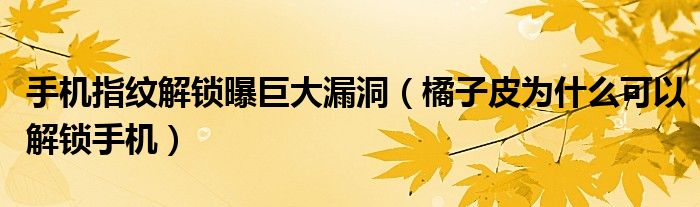 大家好,綜合小編來為大家講解下。手機指紋解鎖曝巨大漏洞,橘子皮為什么可以解鎖手機很多人還不知道,現在讓我們一起來看看吧!