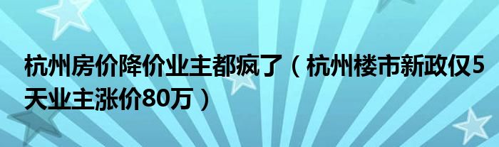 大家好,綜合小編來為大家講解下。杭州房價降價業(yè)主都瘋了,杭州樓市新政僅5天業(yè)主漲價80萬很多人還不知道,現(xiàn)在讓我們一起來看看吧!